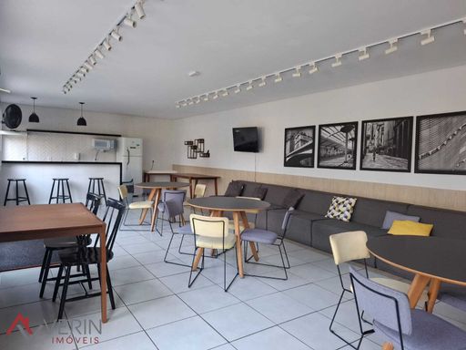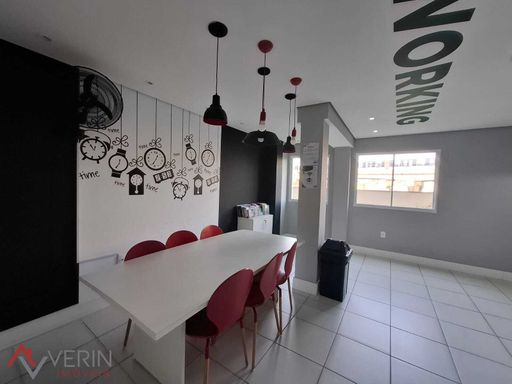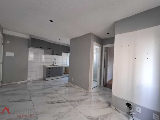 Apartamento com 40,78m2 e 2 dormitórios, sala, cozinha integrada e área de serviço. Piso porcelanato na sala, cozinha e área de serviços e piso laminado nos quartos. Vaga de garagem coberta. Condomínio com ampla área de lazer e coworking.