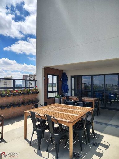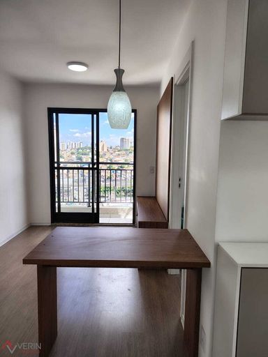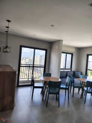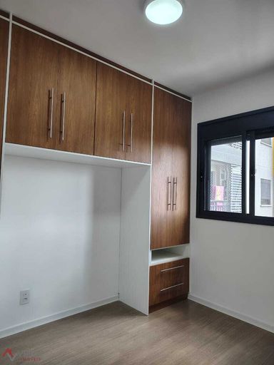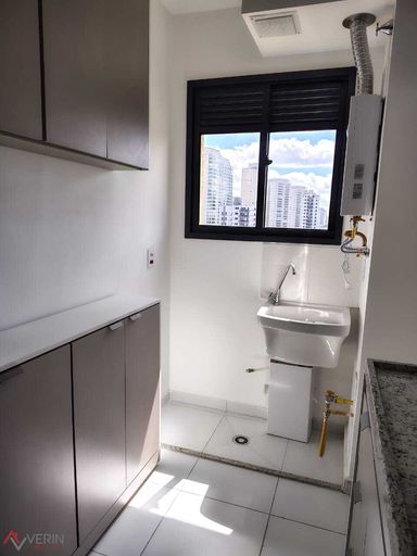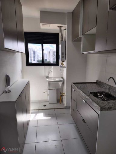 Apartamento novo, nunca habitado com 2 dormitórios, 1 banheiro, ,área de serviço e sacada. Móveis planejados na cozinha e em 1 dos dormitórios. Piso laminado na sala e quartos. Andar alto e com vista livre. Não tem vaga de garagem. Condomínio com piscina, academia, salão de festas, salão de jogos, espaço fitines aberto, churrasqueira e lavanderia coletiva.