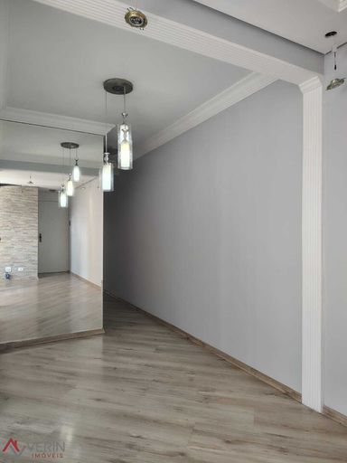 Apartamento reformado com 3 dormitórios, sendo 1 com ar condicionado, 1 banheiro e 1 vaga de garagem coberta. Sala com sanca e piso laminado, cozinha com móveis e coifa. Condomínio com área de lazer para toda a família.
